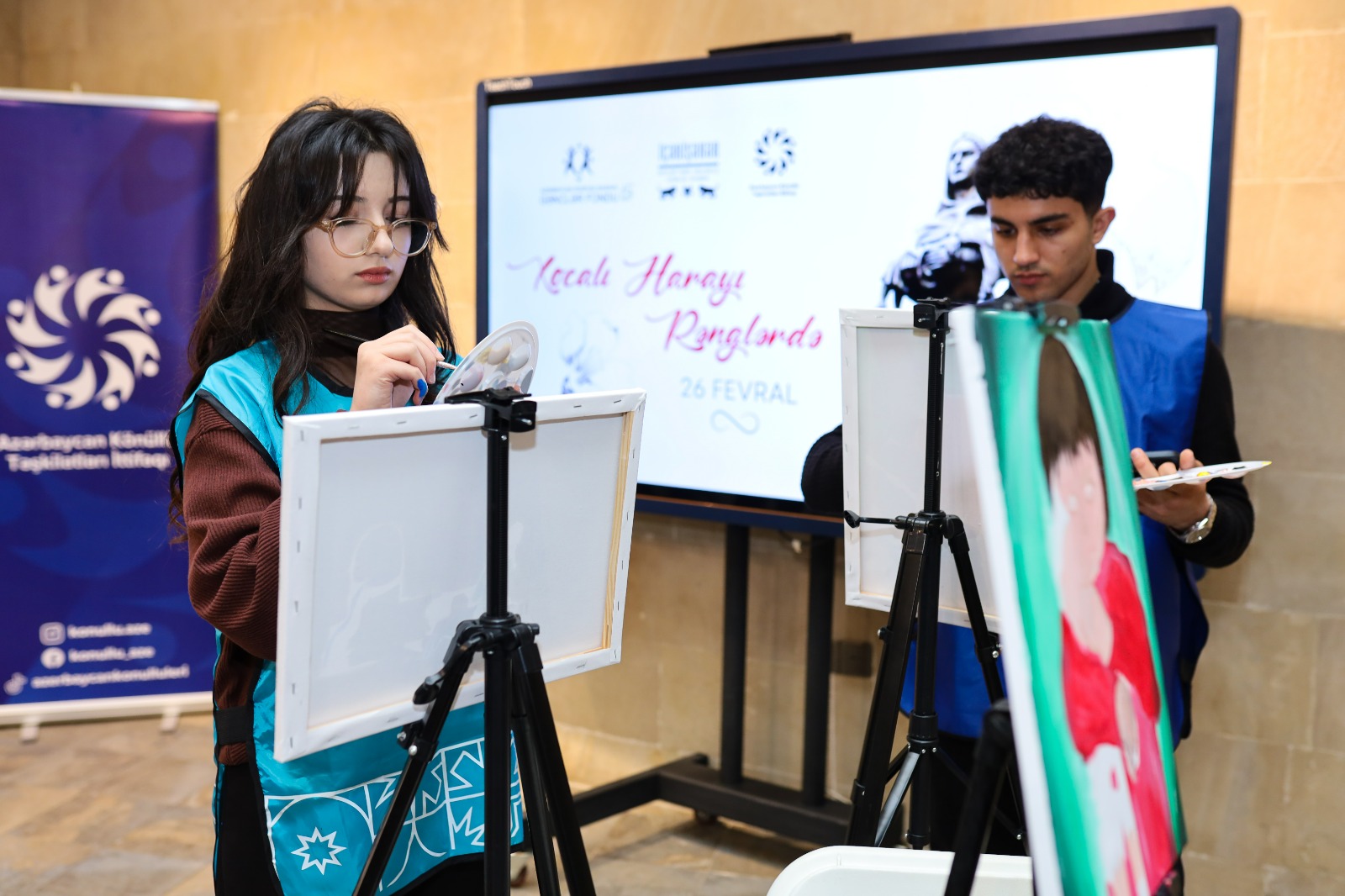 Daha sonra Azərbaycan Könüllüləri “Xocalı Harayı Rənglərdə” mövzusunda rəsmlər çəkiblər. Yaradılan rəsm əsərlərində insan taleləri, itkilər, ana harayı və uşaqların yarımçıq qalan arzuları, xalqımızın sarsılmaz iradəsi rənglərin dili ilə əks etdirilib. Rəsmlərdə yalnız faciənin ağrısı deyil, eyni zamanda Vətən müharibəsində qazanılan Zəfərin qüruru, Xocalıya qayıdışın sevinc hissi və azad torpaqlarımızda yenidən ucalan həyatın işığı öz ifadəsini tapıb. Bu əsərlər bir daha göstərib ki, xalqımızın yaddaşında Xocalının kədəri ilə yanaşı, Böyük Qayıdışın sevinci və qalibiyyət ruhu da daim yaşayır. Daha sonra hazırlanmış əsərlərin sərgisi həyata keçirilib. Qeyd edək ki, layihə Gənclər Fondunun dəstəyi, “İçərişəhər” Dövlət Tarix-Memarlıq Qoruğu İdarəsinin tərəfdaşlığı ilə Bakı Fotoqrafiya Evində keçirilib.