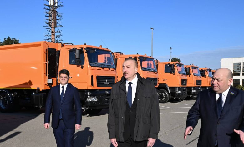 Prezident İlham Əliyev Bakıda məişət tullantıları daşıyan texnikalarla tanış olub