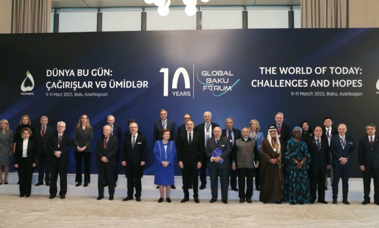 Azərbaycan indiyə qədər bir sira beynəlxalq konfranslara ev sahibliyi etmişdir. Bunlardan biri də X Qlobal Bakı Forumudur. Forum Nizami Gəncəvi Beynəlxalq Mərkəzində keçirilmişdir ki, bu da böyük şairimizin xatirəsinə və irsinə olan dərin hörmətlə bağlıdır. Nizami Gəncəvi Azərbaycanın qədim şəhərlərindən olan Gəncə şəhərində dünyaya göz açıb, yaşayıb, orada da vəfat edib. Onun müdrikliyi və istedadı Azərbaycan xalqının istedadını və müdrikliyini təcəssüm etdirir.