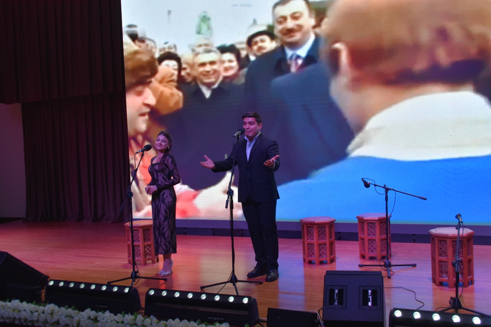 Bayram konsertində ilk öncə Ulu öndər Heydər Əliyevin, Respublikamızın suverenliyi və ərazi bötövlüyü uğrunda canlarını qurban vermiş şəhidlərimizin əziz xatirəsi bir dəqiqəlik sükutla yad olunub. Sonra Azərbaycan Respublikasının Dövlət Himninin səsləndirilib.